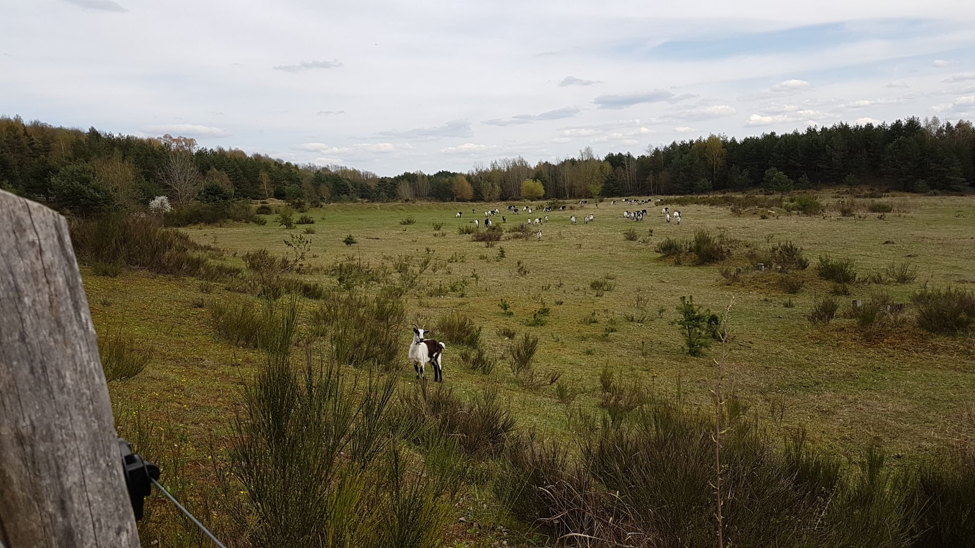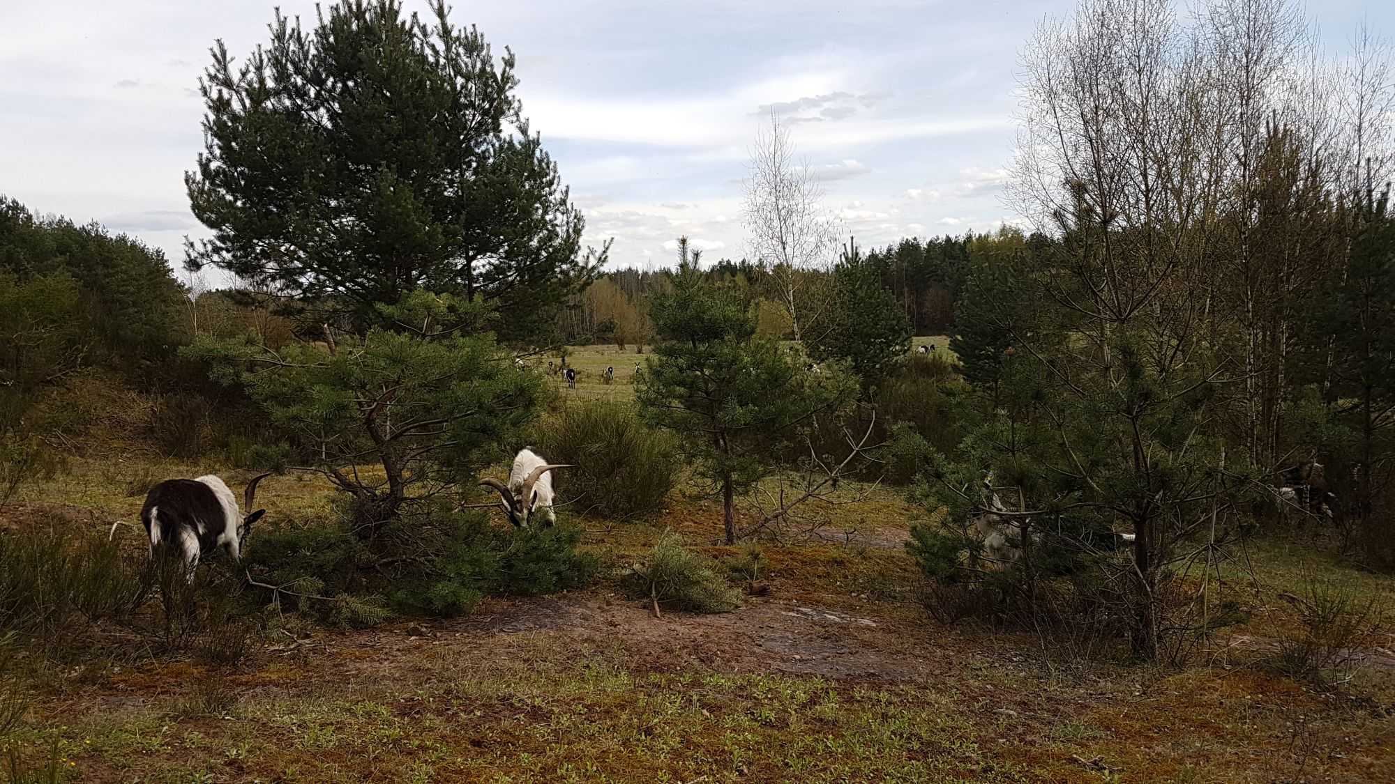 Die Wildpferde bekommen tierische Unterstützung. Denn: „Pferde sind nicht gut in Gehölzbekämpfung“, sagt Verena Fröhlich, Biologin und Gebietsbetreuerin des Tennenloher Forsts. Daher werden seit 2012 auch Pfauenziegen eingesetzt. Kleiner Exkurs: Die schwarz-weiß gefärbte Ziege hat mit einem Pfau gar nichts zu tun: „Die Bezeichnung ‚Pfau-‚ leitet sich von ‚pfaven‘ ab und bedeutet im Rätoromanischen ‚gefleckt‘. Durch einen Schreibfehler wurde aus dem ‚V‘ ein ‚U'“ (Verein Arche Austria). Die Pfauenziegen fressen gerne Laub, Zweige und Nadeln, erklärt das Landratsamt Erlangen-Höchstadt: